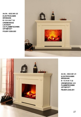 Art.Nr.: 6522.061.02 ELEKTROKAMIN BRISBANE B 115 H 94 T 33 CREMEWEISS LACKIERT 3-D FLAMMTECHNIK OPTIMYST® FEUER 2356.002 Art.Nr.: 6522.061.01 ELEKTROKAMIN BRISBANE B 115 H 94 T 33 CREMEWEISS 3-D FLAMMTECHNIK OPTIMYST® FEUER 2356.001 27