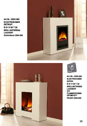 Art.Nr.: 6523.060 ELEKTROKAMIN DETROIT B 91 H 95 T 30 BRILLANTWEISS LACKIERT Elektrofeuer 2364.000 Art.-Nr.: 6525.060 ELEKTROKAMIN EATON B 91 H 95 T 30 BRILLANTWEISS LACKIERT 3-D FLAMMTECHNIK OPTIMYST® FEUER 2356.003 28