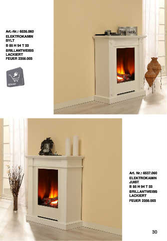 Art.-Nr.: 6536.060 ELEKTROKAMIN SYLT B 85 H 94 T 33 BRILLANTWEISS LACKIERT FEUER 2356.003 Art. Nr.: 6537.060 ELEKTROKAMIN JUIST B 85 H 94 T 33 BRILLANTWEISS LACKIERT FEUER 2356.003 30