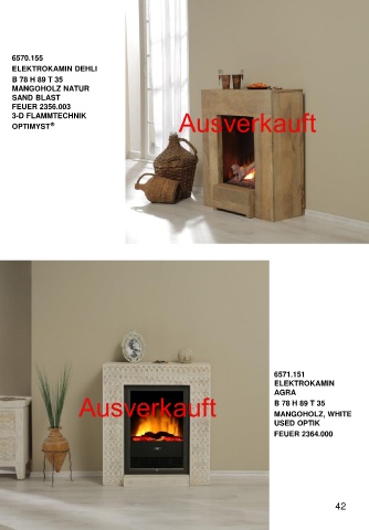 6570.155 ELEKTROKAMIN DEHLI B 78 H 89 T 35 MANGOHOLZ NATUR SAND BLAST FEUER 2356.003 3-D FLAMMTECHNIK OPTIMYST® 6571.151 ELEKTROKAMIN AGRA B 78 H 89 T 35 MANGOHOLZ, WHITE USED OPTIK FEUER 2364.000 42