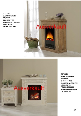 6572.155 ELEKTROKAMIN NAGPUR B 84 H 94 T 32 MANGOHOLZ NATUR SAND BLAST FEUER 2364.000 6573.151 ELEKTROKAMIN MUMBAI B 84 H 94 T 32 MANGOHOLZ WHITE USED OPTIK FEUER 2356.003 3-D FLAMMTECHNIK OPTIMYST® 47