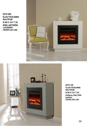 6575.060 ELEKTROKAMIN BALTRUM B 96 H 101 T 30 BRILLANTWEIß LACKIERT FEUER 2361.000 6575.126 ELEKTROKAMIN BALTRUM B 96 H 101 T 30 Hellgrau RAL7040 lackiert FEUER 2361.000 50