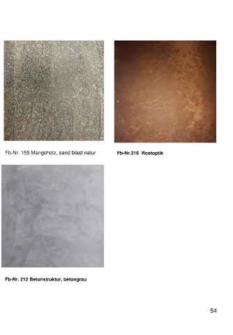 Fb-Nr. 155 Mangoholz, sand blast natur Fb-Nr.216 Rostoptik Fb-Nr. 212 Betonstruktur, betongrau 54