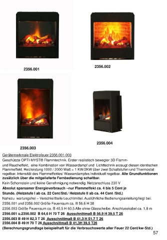 Gerätemerkmale Elektrofeuer 2356.001-003