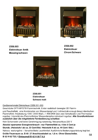 Gerätemerkmale Elektrofeuer 2358.001-003