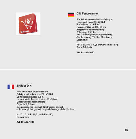 entonnoir, pichet gradué, harpe d'allumage et d'extinction)