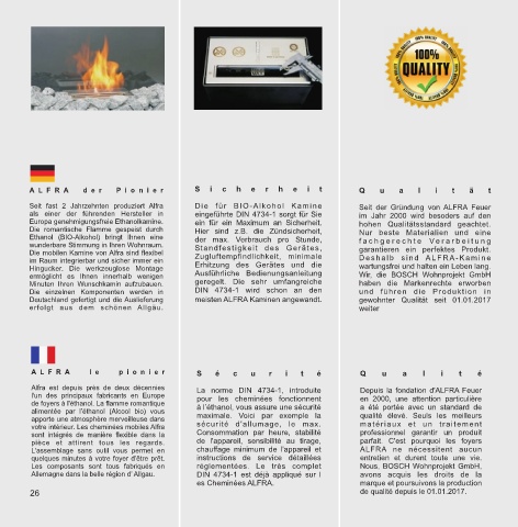 Deutschland gefertigt und die Auslieferung meisten ALFRA Kaminen angewandt. gewohnter Qualität seit 01.01.2017