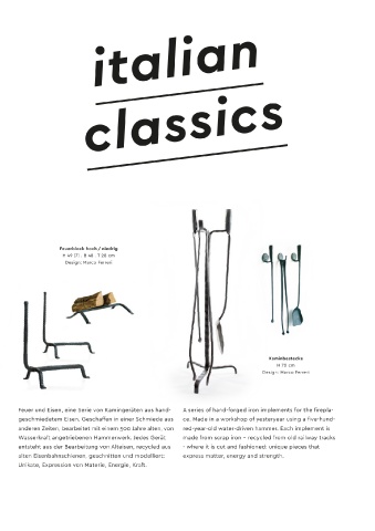Feuer und Eisen, eine Serie von Kamingeräten aus hand- A series of hand-forged iron implements for the firepla- a Ferro e fuoco