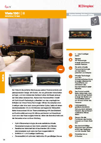 • Opti-V-Flammentechnologie; die erste realistische virtuelle aus.