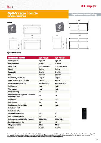 TECHNISCHE DETAILS Opti-V Single Opti-V Double