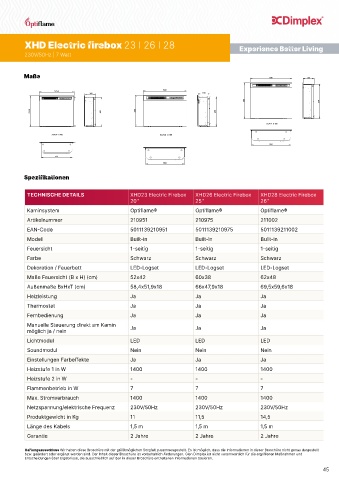TECHNISCHE DETAILS XHD23 Electric Firebox XHD26 Electric Firebox XHD28 Electric Firebox