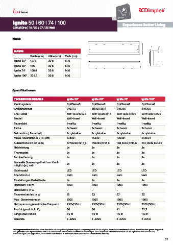 TECHNISCHE DETAILS Ignite 50'' Ignite 60’’ Ignite 74’’ Ignite 100''