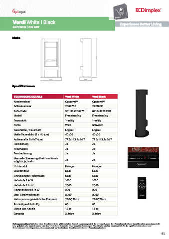 TECHNISCHE DETAILS Verdi White Verdi Black