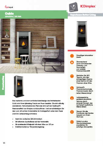 wandelnden, frei schwebenden Flammen sind auf den Optimyst®- Wärme liefert.