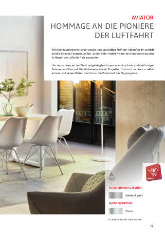 der Bio-Ethanol-Feuerstellen fort. So hat beim Modell Aviator ein Sternmotor aus den