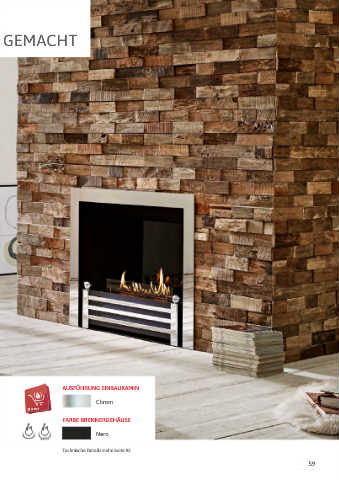 THE CITY DIESE FEUERSTELLE HAT SICH STADTFEIN GEMACHT AUSFÜHRUNG EINBAUKAMIN Chrom FARBE BRENNERGEHÄUSE Nero Technische Details siehe Seite 92 59