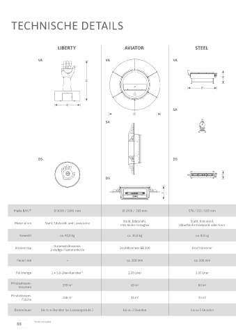 Materialien Stahl, Edelstahl und Lavasteine ESG-Sicherheitsglas Oberfläche Edelstahl oder Nero hitzebeständige Glaskeramik Sicherheitsglas inklusive Glaszylinder inklusive Glaszylinder Materialien