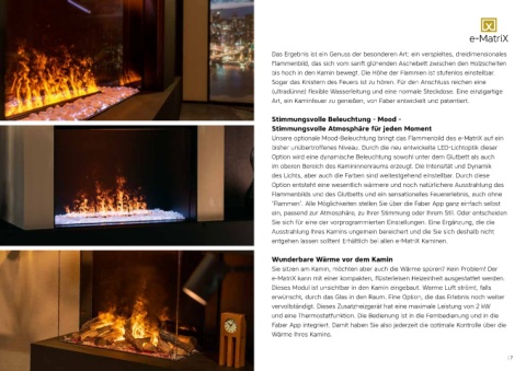 Unsere optionale Mood-Beleuchtung bringt das Flammenbild des e-MatriX auf ein