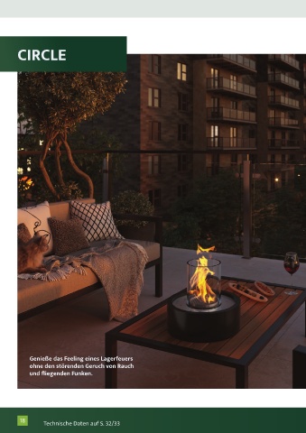CIRCLE Genieße das Feeling eines Lagerfeuers ohne den störenden Geruch von Rauch und fliegenden Funken. 18 Technische Daten auf S. 32/33