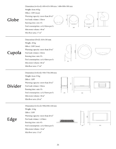Burning time: min 4 h Min room volume: 40 m3 48 m3 196 196